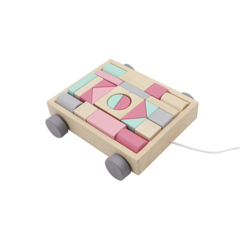 Fakopáncs 25 db-os építőkocka kiskocsiban - rózsaszín
