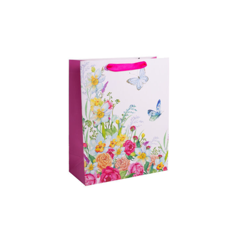 1 kép Fakopáncs Ajándéktasak - kicsi (fehér, virágok pillangókkal)