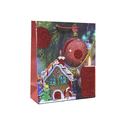 1 kép Fakopáncs Ajándéktasak - kicsi (mézeskalácsház, piros gömb)