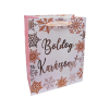 1 kép Fakopáncs Ajándéktasak - kicsi (rózsaszín alapon hópelyhek karácsonyi köszöntéssel)