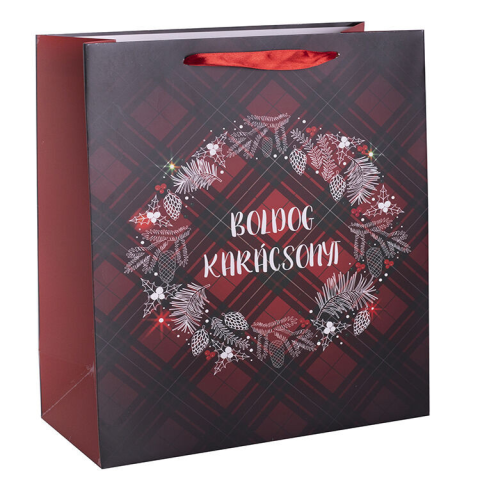 1 kép Fakopáncs Ajándéktasak - kicsi (skót kockás alapon Boldog Karácsonyt felírat)