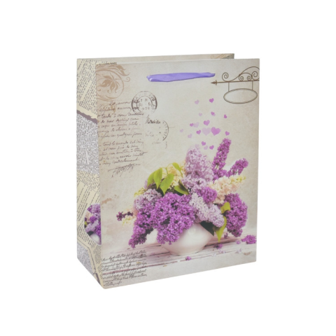1 kép Fakopáncs Ajándéktasak - közepes (bézs alapon, lila-fehér orgona))