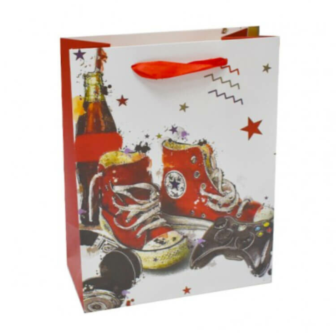1 kép Fakopáncs Ajándéktasak - közepes (fehér alapon piros tornacipő üdítővel)