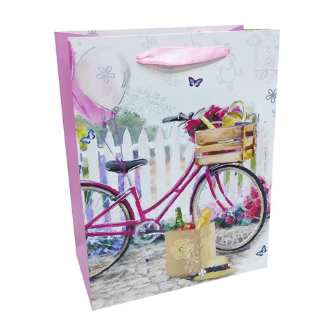 1 kép Fakopáncs Ajándéktasak - közepes (pink bicikli kosárral)