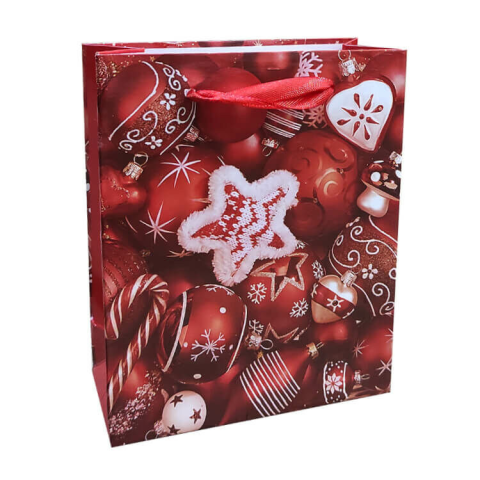 1 kép Fakopáncs Ajándéktasak - közepes (piros karácsonyfa díszek)