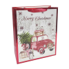 1 kép Fakopáncs Ajándéktasak - közepes (piros pick up autó karácsonyfával, háttérben havas táj)
