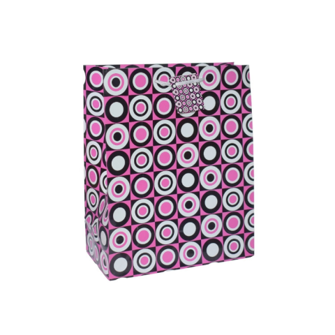 1 kép Fakopáncs Ajándéktasak - közepes (rózsaszín, fehér-fekete körök négyzetben