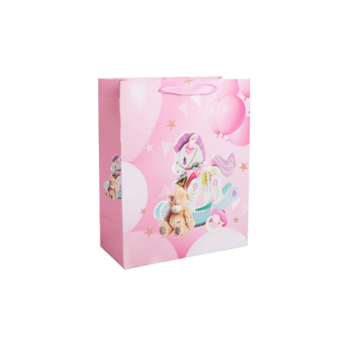 1 kép Fakopáncs Ajándéktasak - közepes (rózsaszín, hintaló macival)