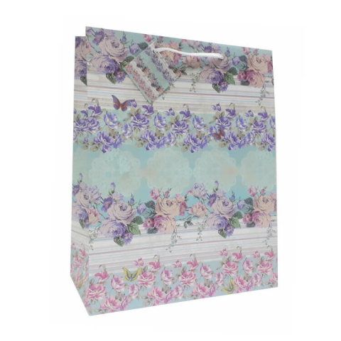 1 kép Fakopáncs Ajándéktasak - közepes (vízszintes csíkban lilás virágminta)