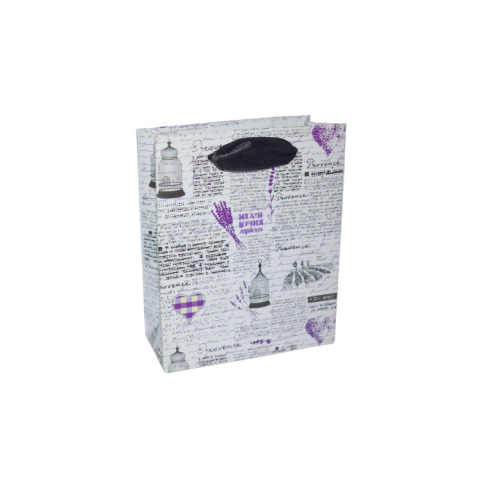 1 kép Fakopáncs Ajándéktasak - mini (fehér alapon fekete kalitka és lila levendula)