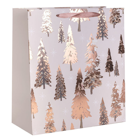 1 kép Fakopáncs Ajándéktasak - nagy (rózsaszín alapon fenyőfák)