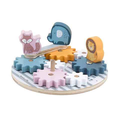 Fedezze fel modern és izgalmas játékainkat, vásárolja meg termékünket kényelmesen webáruházunkból! Termék méret 18 X 18 X 7,2 cm Fából készült színes erdei állatok fogaskerekeken. A játék a mindenki által ismert fogaskerekeken alapszik, melyekre felhelyez