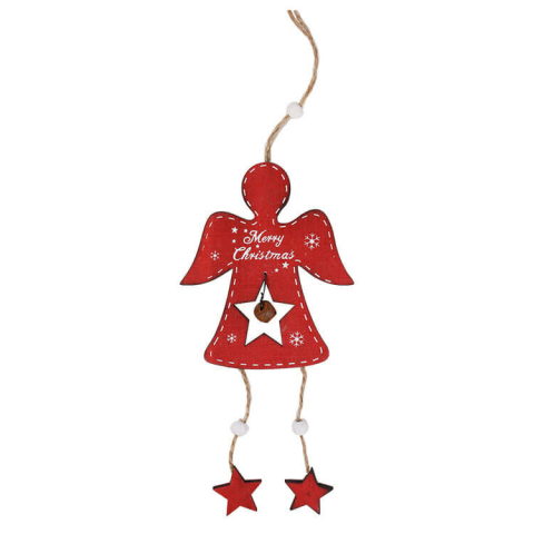 1 kép Fakopáncs Dekorációs figura (piros angyal, lógó csillaggal)