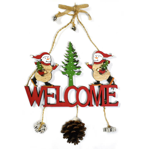 1 kép Fakopáncs Dekorációs figura (welcome felirat fenyőfával és tobozzal, hóemberekkel)