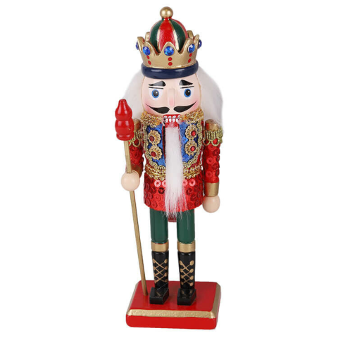 1 kép Fakopáncs Diótörő (arany díszes piros-kék színű, kő berakású, flitteres ruhában)
