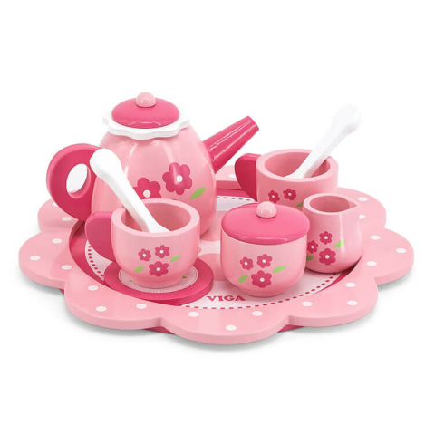 1 kép Fakopáncs Fa teáskészlet (rózsaszín)