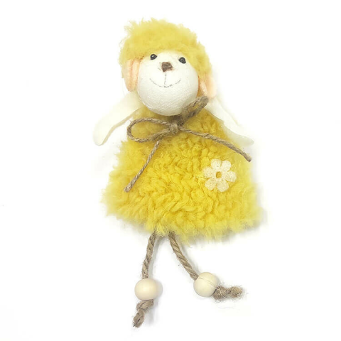1 kép Fakopáncs Húsvéti dekoráció figura (Sárga bárány fehér virággal)