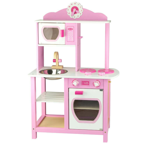 A játékkonyha nem csupán egy játék, hanem egy kreatív tér, ahol a gyerekek játékosan fedezhetik fel a főzés és sütés alapjait. A rózsaszín fa konyha sütővel, mikrohullámú sütővel és mosogatóval felszerelve igazi „mini konyhaként” működik, amely hosszú idő