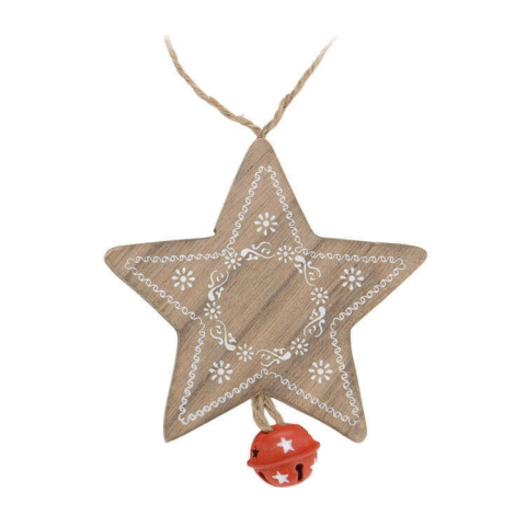 1 kép Fakopáncs Karácsonyfadísz fából (csillag piros csengővel)