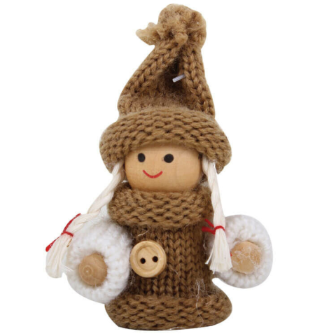1 kép Fakopáncs Karácsonyfadísz (kötött, egy gombos, barna lány)