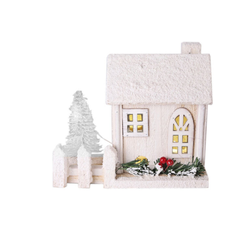 1 kép Fakopáncs Karácsonyi asztaldísz LED világítással (fehér ház, kerítéssel)