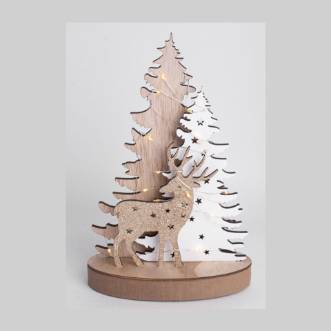 1 kép Fakopáncs Karácsonyi asztaldísz LED világítással (natúr, fehér fenyő, rénszarvas)