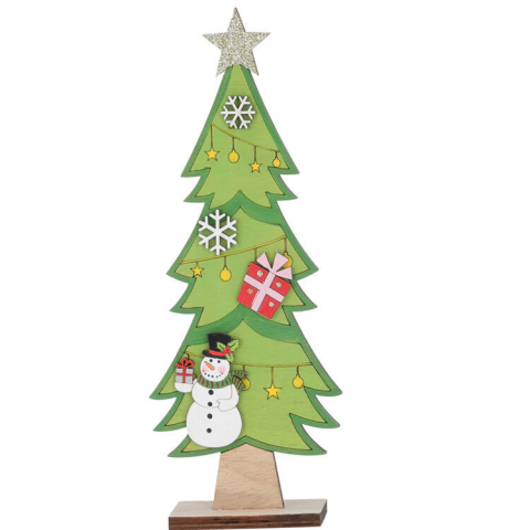 1 kép Fakopáncs Karácsonyi asztaldísz (zöld karácsonyfa hóemberrel)