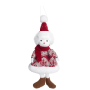 Textilből készült karácsonyi dekoráció-hóember kötött ruhában, bordó sállal. Ideális belső terek ünnepi díszítésére.