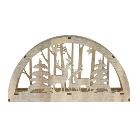 1 kép    Fakopáncs Karácsonyi dekoráció LED világítással (félkör ívben rénszarvasok)