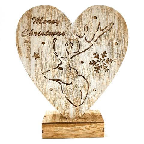 1 kép Fakopáncs Karácsonyi dekoráció LED világítással (szív szarvassal)