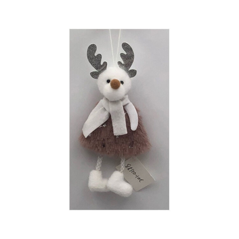 Textilből készült szürke rénszarvas, csillagos bundában. Ideális karácsonyfára vagy belső terek ünnepi díszítésére.