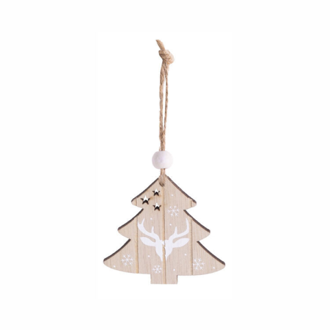 1 kép Fakopáncs Karácsonyi dekoráció (natúr fenyő rénszarvassal, 2 db)
