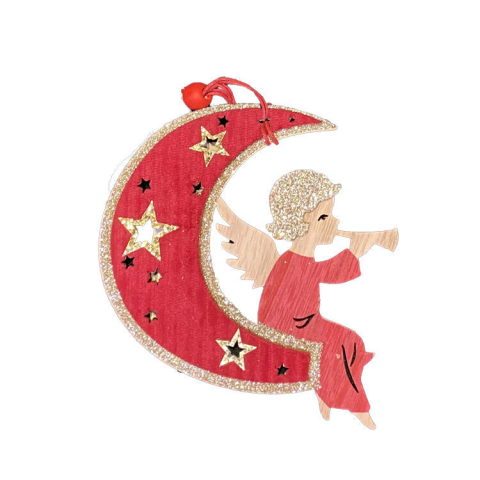 1 kép Fakopáncs Karácsonyi dekoráció (piros hold, angyal kürttel)