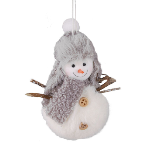 1 kép Fakopáncs Karácsonyi dekoráció (plüss hóember szürke sállal és fülvédős sapkával)