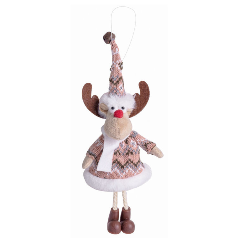 1 kép Fakopáncs Karácsonyi dekoráció (rénszarvas kötött ruhában, fehér sállal)