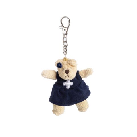 1 kép Fakopáncs Kulcstartó (maci kék ruhában, fehér kereszttel)
