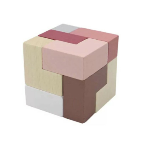 1 kép Fakopáncs Logikai kocka L alakú elemekből (bordó, barna, natúr)