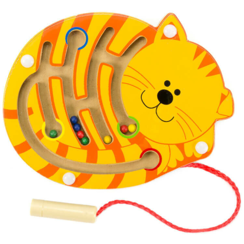 1 kép Fakopáncs Mágneses golyóvezető (kicsi, cica) - készségfejlesztő játék