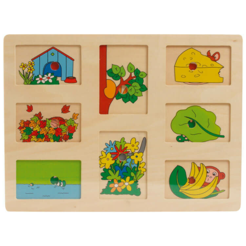 Fedezze fel modern és izgalmas játékainkat, vásárolja meg termékünket kényelmesen webáruházunkból! Fából készült fejlesztő játék. A játék során a gyermek megtanulja társítani a különböző fogalmakat egymáshoz. Kezdetben nekünk kell feltenni a sok kérdést (