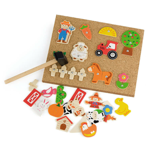 Fedezze fel modern és izgalmas játékainkat, vásárolja meg termékünket kényelmesen webáruházunkból! Termék méret 22,5 X 18 X 4,5 cm Mozaik szett (farmos). A feladat lényege, hogy a kalapács segítségével a parafatáblára kell illeszteni a különböző szegecsek