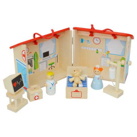Fedezze fel modern és izgalmas játékainkat, vásárolja meg termékünket kényelmesen webáruházunkból! Fából készült Kórház (tartozékokkal). A doboz zárható. Kiválóan alkalmas szerepjátékokhoz, mely segítségével fejlődik a képzelőerő, a nyelvi- és kapcsolatte