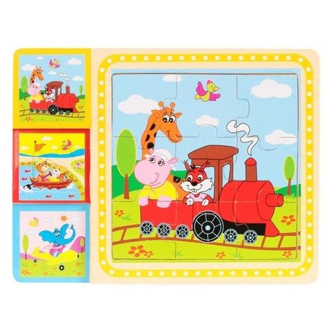 Fedezze fel modern és izgalmas játékainkat, vásárolja meg termékünket kényelmesen webáruházunkból! 3 x 9 db-os fa puzzle 3 különböző képpel.Rakd össze a képet a darabokból.A puzzle játékok nem csak fejlesztik a memóriát, a megfigyelő és koncentrációs képe