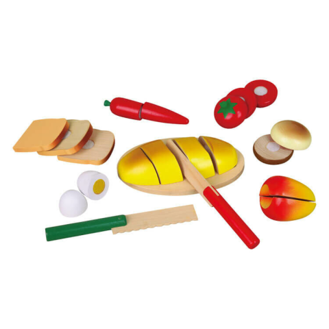 Fedezze fel modern és izgalmas játékainkat, vásárolja meg termékünket kényelmesen webáruházunkból! Színes, fából készült reggelifélék 2 fakéssel, vágódeszkával mellékelve. A készlet fadobozban érkezik, amelyben könnyedén tárolható a későbbiekben is. Minde