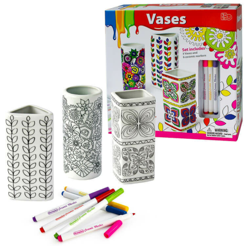 Fedezze fel modern és izgalmas játékainkat, vásárolja meg termékünket kényelmesen webáruházunkból! Színezd ki a vázákat saját ízlésednek megfelelően! A termék 3 db különböző formájú vázát és 6 db speciális porcelán színező filctollat tartalmaz. Hogyan dol