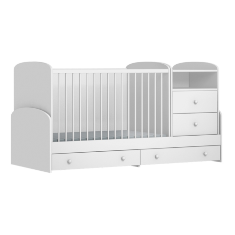 kombi kiságy Szállítási idő: megrendeléstől számított 5-6 hét A legsokoldalúbb gyermekágyunk. Amellett, hogy a kezdeti időszakban babaágy és pelenkázó komód egyben, később még ifjúsági ággyá, valamint íróasztallá is alakítható. Mikor már nem használja