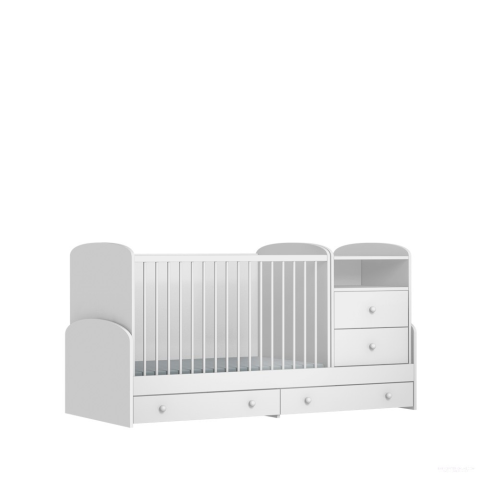 Faktum Mia Fehér kombi babaágy 2 fiókos komóddal A legsokoldalúbb gyermekágyunk. Amellett, hogy a kezdeti időszakban babaágy és pelenkázó komód egyben, később még ifjúsági ággyá, valamint íróasztallá is alakítható. Mikor már nem használja a gyermek