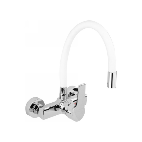FALA Mosogató csaptelep fali fehér flexibilis csővel + tartozékok A gyakorlati és esztétikus Rugalmas csaptelep hajlékony kifolyócsővel innovatív ötlet a mosogatóban végzendő munka megkönnyítésére.hajlékony kifolyócső, amely bármilyen formát kaphat, po