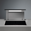 FALMEC DOWN DRAFT pultba építhető páraelszívó, 120 cm, fekete, (motor nélkül) Rozsdamentes acél, fehér/fekete üveg Kivezetéses vagy belső keringetéses üzemmód Perimetrikus elszívás Méret: 90 és 120 cm LED világítás 1 x 10 W Érintővezérlés 24 órás