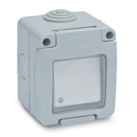 1 kép Famatel Nyomókapcsoló csengő jellel, vízmentes, csapfedeles , 10 A, 250 V, IP55, 19038