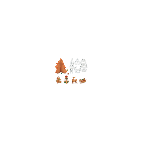16 db-os süteménykiszúró szett, amely segítségével gyerekjáték a karácsonyi hangulat megteremtése. Remek program és élmény lehet, ha gyermekeivel együtt készíti el az ünnepi süteményt, garantáltan élvezni fogják a "munkálatokat". A szett segítségével mézeskalácsból készíthet 3D fenyőfát, szánkót, hóembert. Jellemzők: Meleg szappanos vízben mosható Javasolt kézi mosogatás